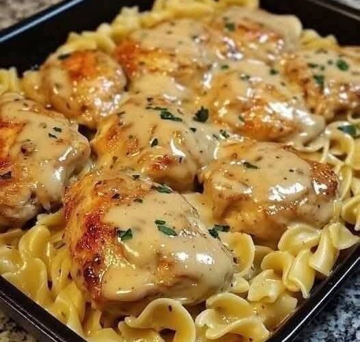 Coxas de frango cremosas com alho sobre macarrão de ovos é um prato que une praticidade, conforto e sabor. É perfeito para noites corridas, mas elegante o suficiente para servir a convidados.
