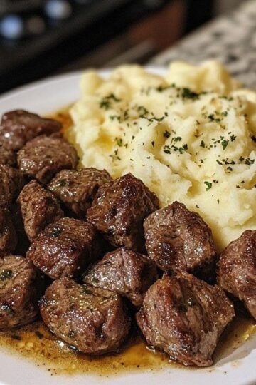 Bocadinhos de Carne com Manteiga de Alho e Purê: Receita Completa para Casa